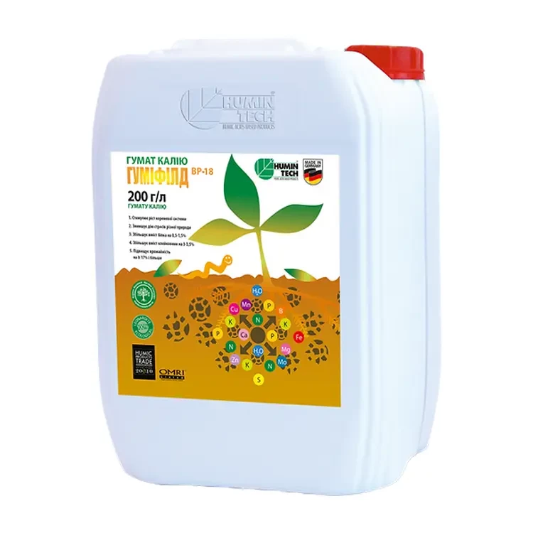 Мікродобриво Гуміфілд ВР-18 – універсальний препарат на основі гумату калію для зняття біотичних та абіотичних стресів, який добре розчинний в жорсткій воді